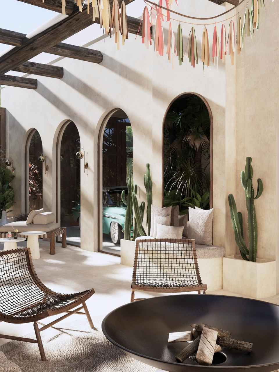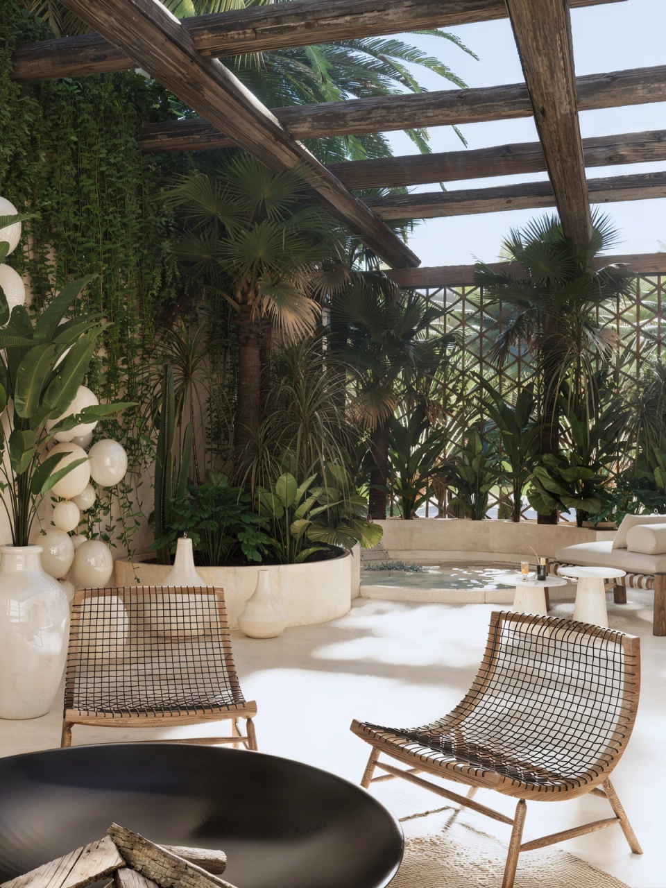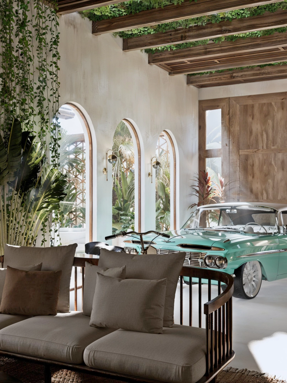 Cuba Libre transporte dans le Cuba ensoleillé des années 50. Une Chevrolet Impala Coupé Sport 1962 trône au centre d'un espace conçu comme un club cubain, où tons chauds, lumière tamisée et matériaux bruts recréent l'ambiance de La Havane. Un ancien carport a été transformé en jardin intérieur luxuriant avec bassin et lounge. La partie intérieure s'ouvre sur le jardin avec de grandes baies laissant l'Impala visible sous tous les angles. Un bar vintage en pièce maîtresse confère l'ambiance d'un club privé.