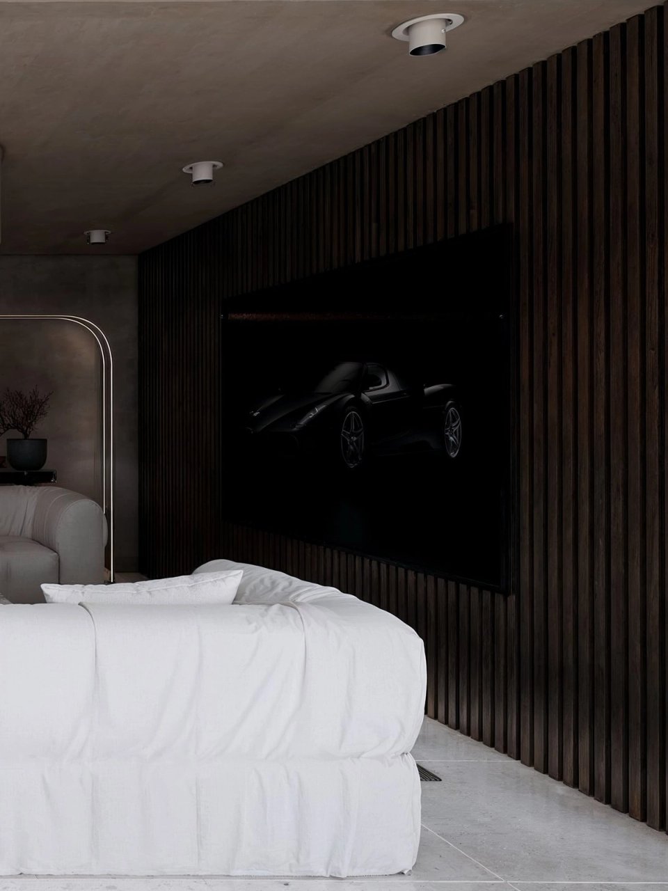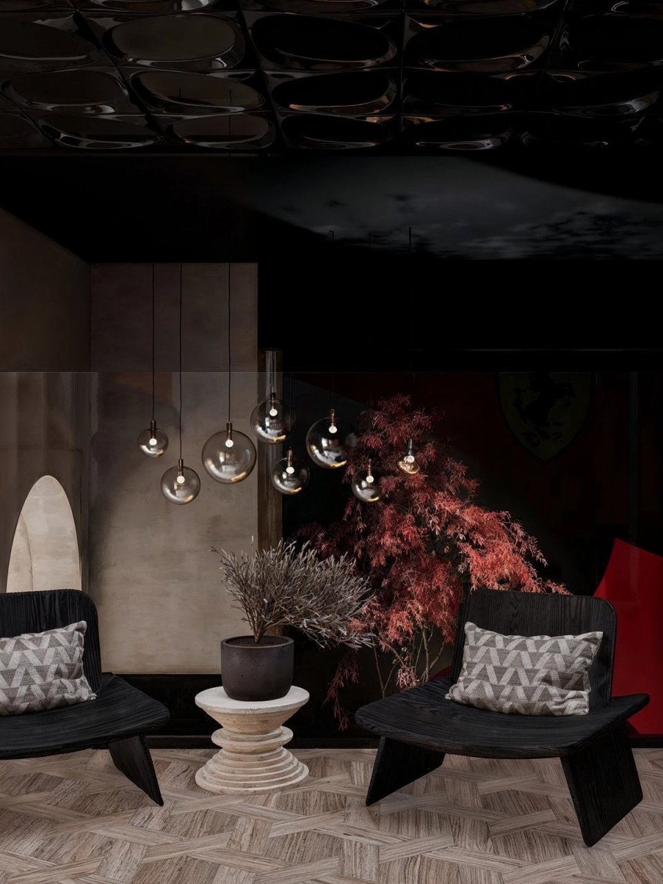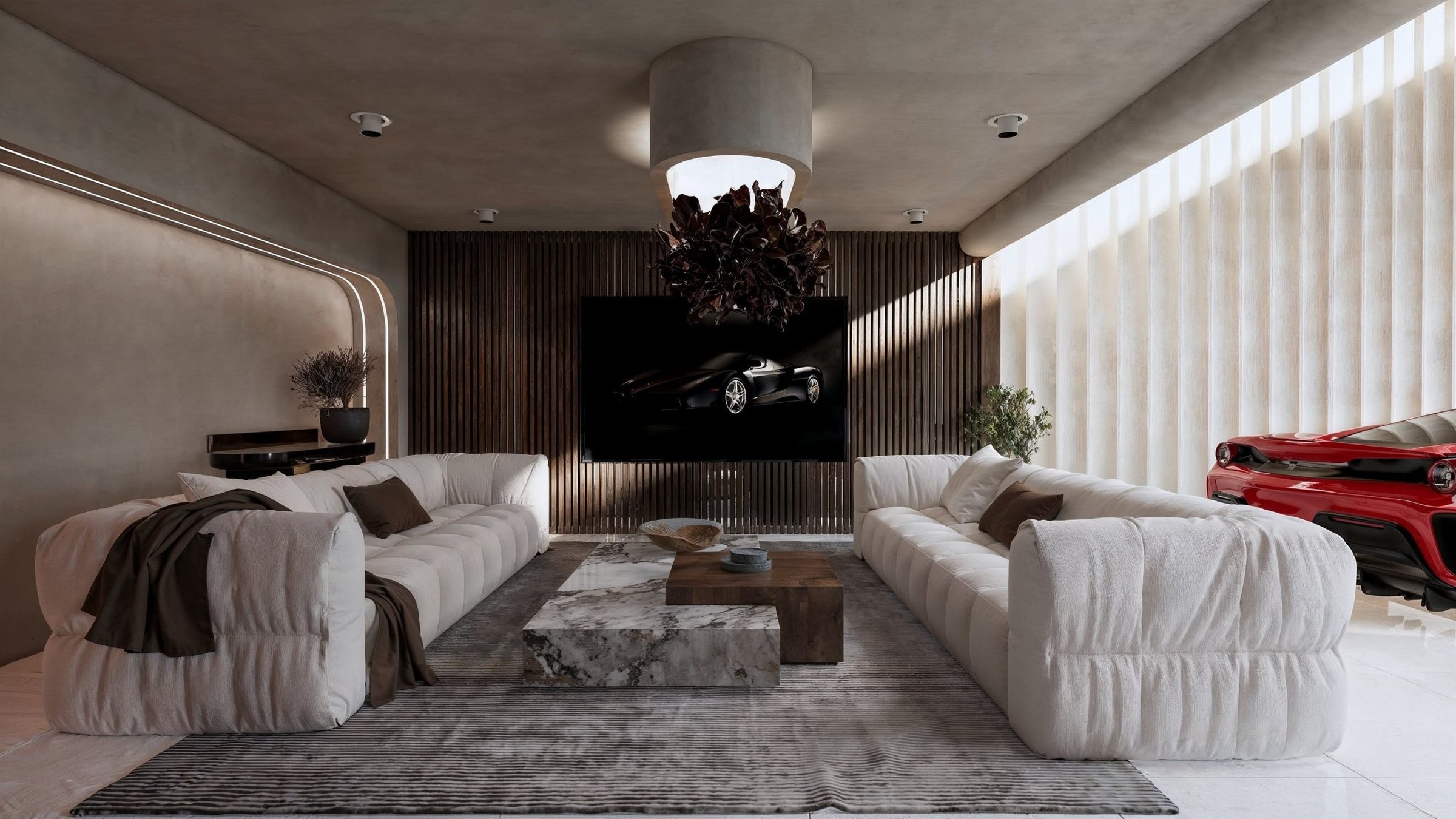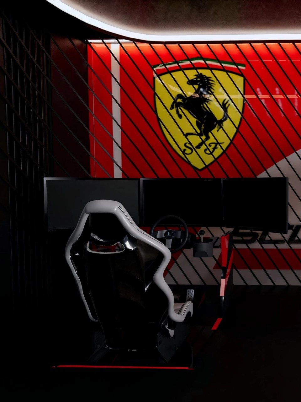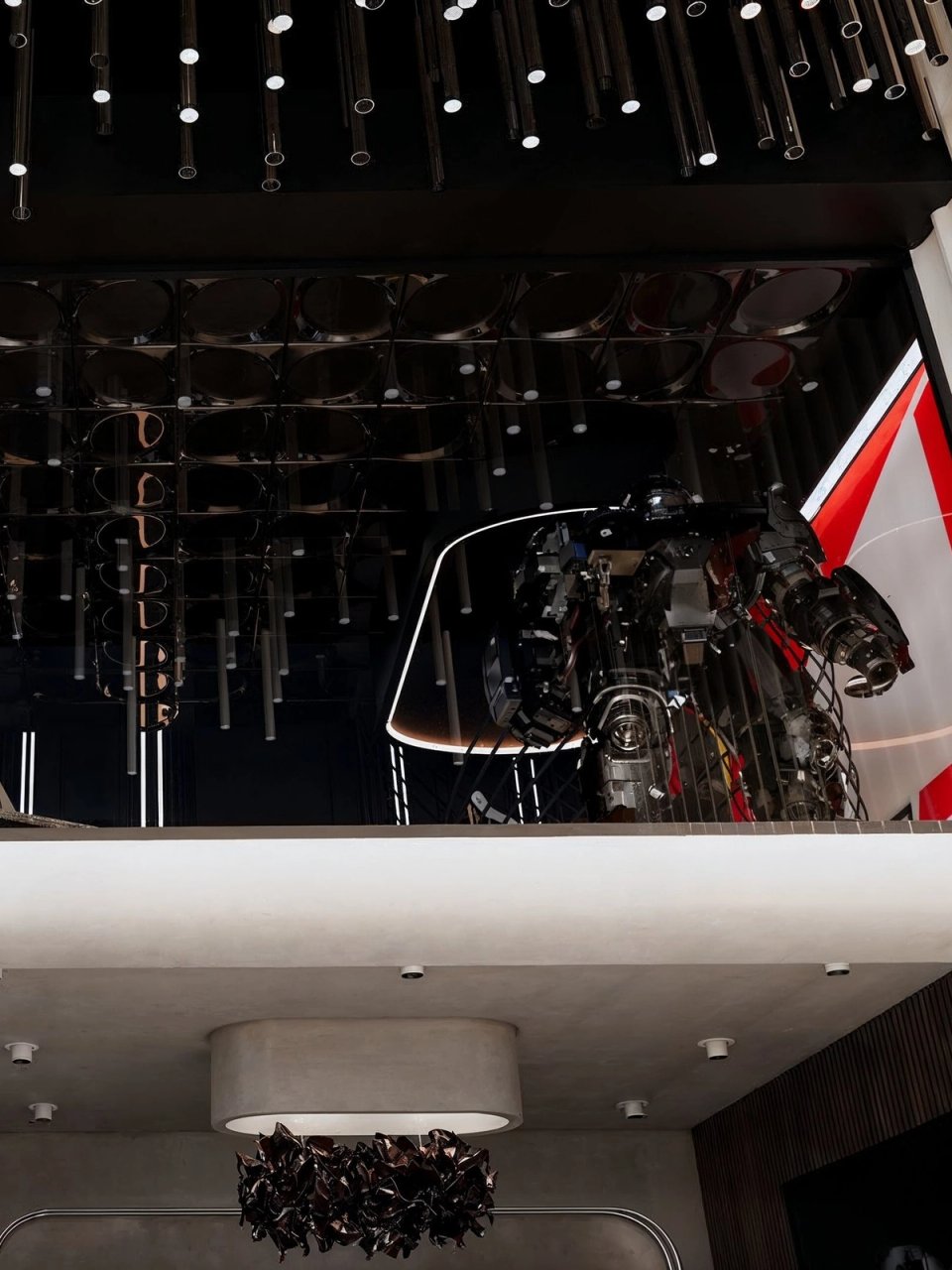 Extension spectaculaire à Dubaï pour un ancien pilote français, SCUDERIA accueille une collection Ferrari dans un espace ouvert sur deux niveaux. L'escalier sur mesure en Rosso Corsa et le baquet de SimRacing moulé sur celui de la Monza SP2 témoignent de l'attention aux détails. Un robot MechWarrior, clin d'œil à la pop culture des années 80, complète l'ambiance. Les matières nobles et les jeux de lumière reflètent la personnalité du propriétaire. Un lieu de célébration en parfaite harmonie avec les rêves du client.